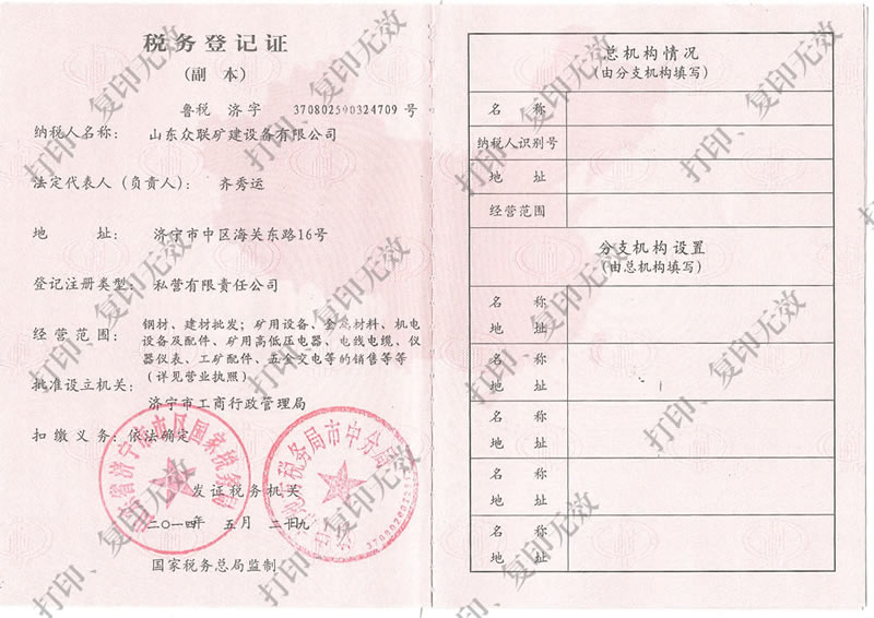 稅務(wù)登記證副本