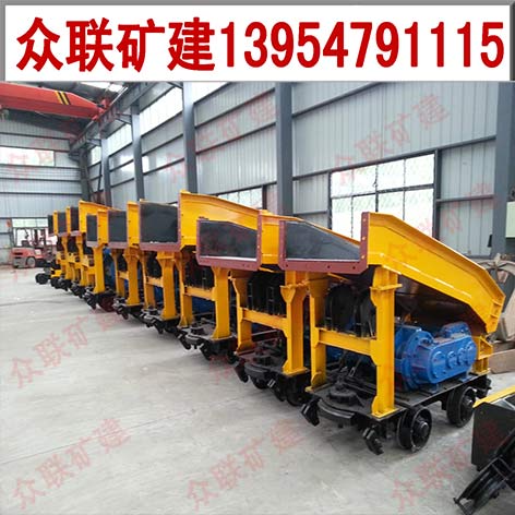 數(shù)臺(tái)耙斗裝巖機(jī)中間槽和耙斗裝車前實(shí)物圖(如下)