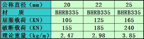 右旋錨桿桿體參數(shù):