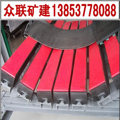 緩沖床主要用于替代緩沖托輥,對(duì)皮帶機(jī)輸送帶起保護(hù)作用,延長(zhǎng)輸送帶的使用壽命。緩沖床是由緩沖條和支架組成的,緩沖條主要應(yīng)用優(yōu)良的高彈性特種橡膠層充分吸收物料下落時(shí)的沖擊力,大大降低了物料下落時(shí)對(duì)輸送帶的沖擊,真正改善物料點(diǎn)的受力狀況,采用特殊UHMW高分子聚乙烯表面,使輸送帶與緩沖條之間摩擦系數(shù)降到最低,且耐磨性好。緩沖床的使用保證了輸送帶的面與面的接觸,受力均勻,有效的防止了由于托輥斷裂脫落造成的皮帶縱向撕裂,同時(shí)大大降低了皮帶被銳器或尖銳物料穿透后縱向撕裂的概率。